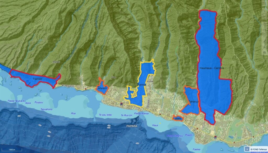 Les six quartiers prioritaires de Papara: TIAMAO, AFARERII, TARIREA, ATETII, TAHARUU, CARRIERE